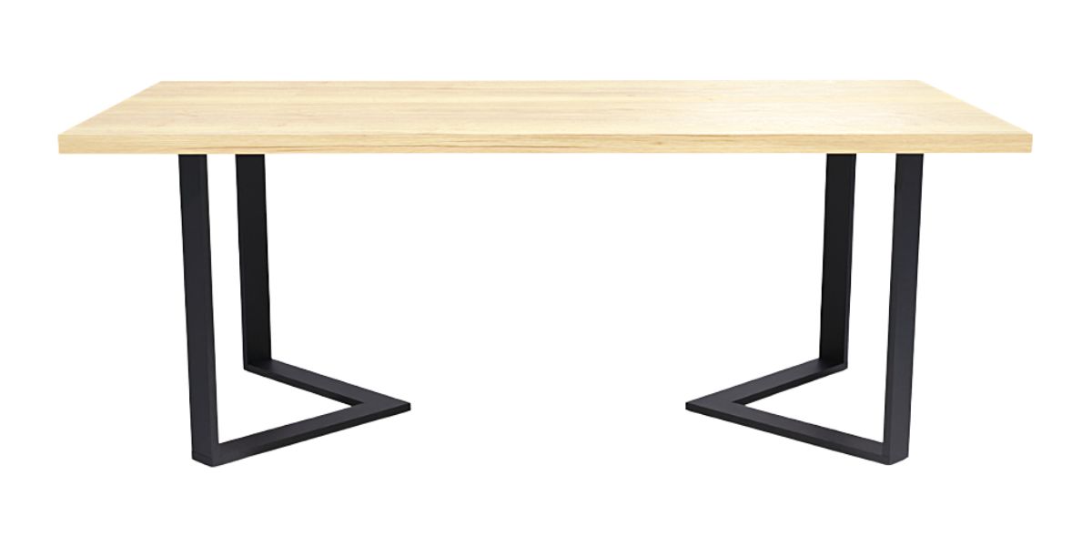 Hrastov blagovaonski stol Špica ima čvrsto i stabilno metalno postolje, te zanimljiv i nesvakidašnji dizajn.